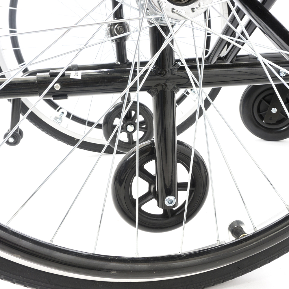 - Оснащена трансферными колесами и съемным антиопрокидывателем, обеспечивающим дополнительную безопасность пользователю при переезде неровностей и препятствий.