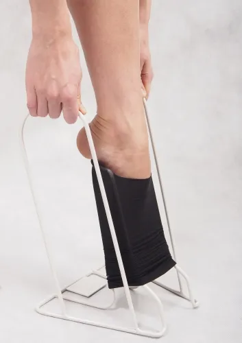Специальное приспособление Ergoforma E 1002-1 позволяет значительно упростить надевание компрессионных изделий. Устройство позволяет экономить силы, снижает возможность нарушения целостности белья.