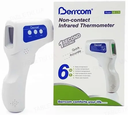 - Бесконтактный инфракрасный термометр BERRCOM JXB-178 для измерения температуры тела на лбу взрослых и детей без контакта с телом (на расстоянии 3-5 см от лба).