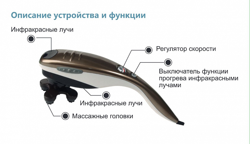 - Инфракрасная терапия. Функция прогрева инфракрасными лучами повышает эффективность массажных процедур.